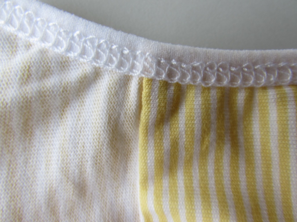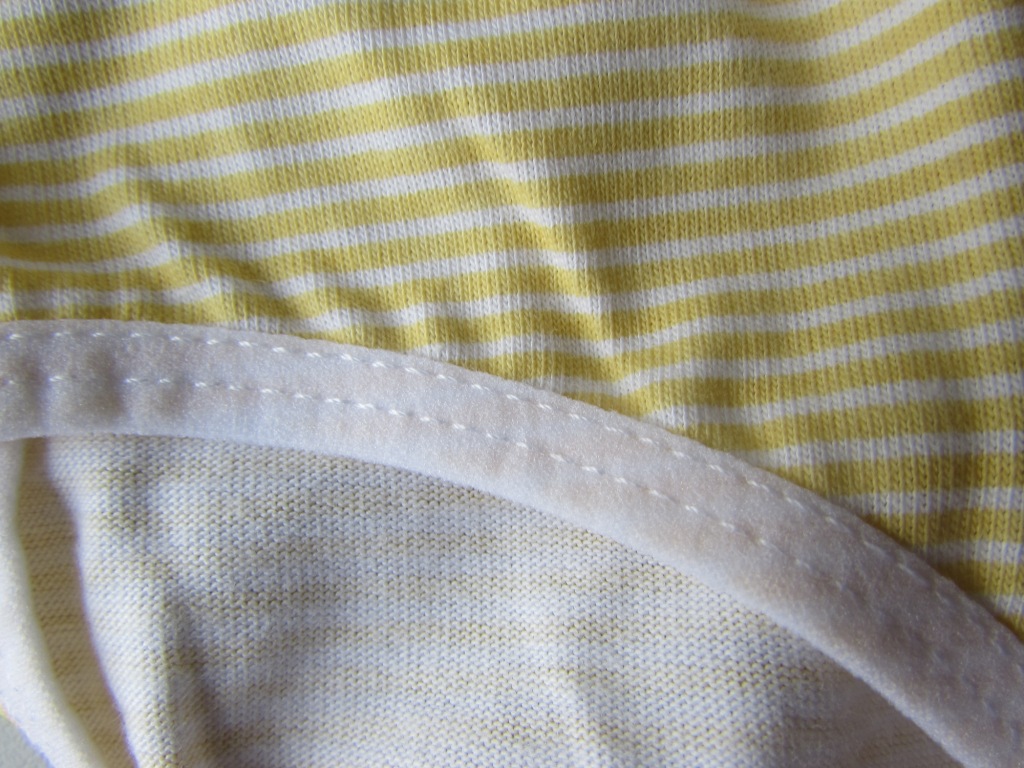 Проймы для ног обрублены трикотажной бейкой, чуть бархатистой по фактуре. Швы ровные, даже стежки кругом одинаковые.